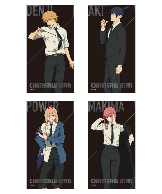 そして大型モニターでの映像放映、販売用フィギュアの展示など見ごたえのある空間に。ぜひお越しください!“チェンソーマン 大交流展”限定オリジナルノベルティは第1弾・第2弾で順次登場。期間中、対象のグッズ2,000円(税込)お買い上げごとに1枚もらえます。