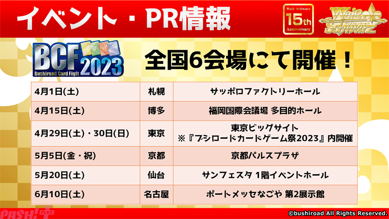 「ブシロードカードファイト2023(BCF2023)」の開催日程が決定。全国6ヶ所にて開催されます。