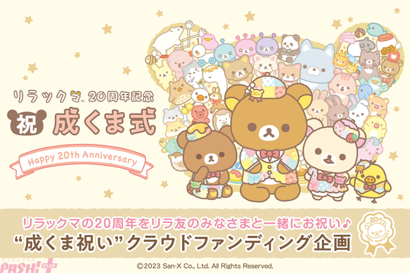 サンエックスは、人気キャラクター“リラックマ”が今年20周年を迎えるのを記念して2023年4月28日より大丸東京店にて行われる“祝・成くま式”の開催に先駆け、リラックマの“成くま”をさらにスペシャルにするための“成くま祝い”クラウドファンディング企画が3月24日19:00より実施されます。