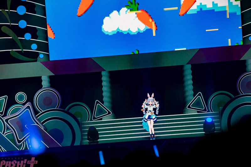 「みんなこんぺこー!いくぞー!」のあいさつで登場したのは、うさぎ年の今年、「全人類兎化計画」を展開中の兎田ぺこら。ナユタン星人が手掛けたアップチューン「ララララビット!!」を披露し、ぴょんぴょん飛び跳ねる様子は思わずこちらも踊り出したくなるステージングだった。