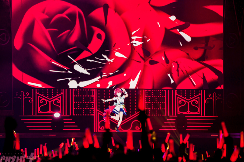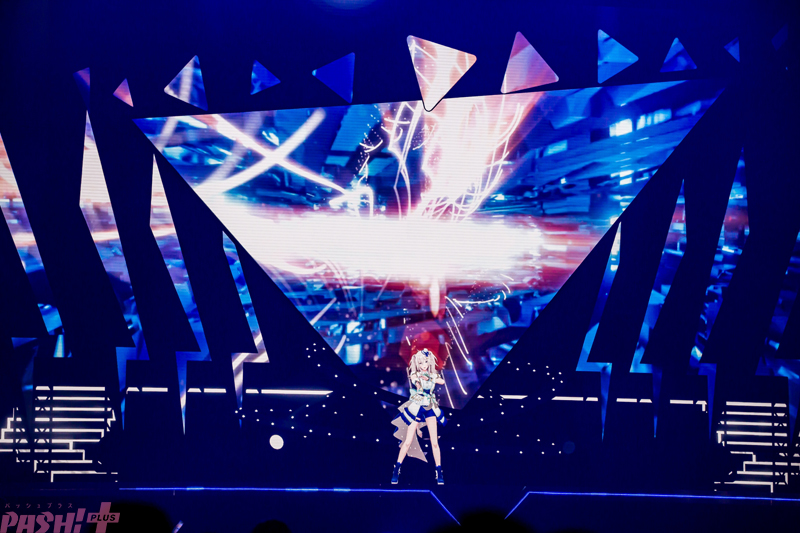 続いてはホロライブインドネシア2期生のパヴォリア・レイネが登場。本来英詞曲である「Illusion Night」を日本語版で歌うという嬉しすぎるプレゼント。間奏ではステージを歩き回りながら腕を振り上げたかと思えば、手のひらで表情を隠すなど繊細な振り付けも見せ、楽曲の世界観を体現した。
