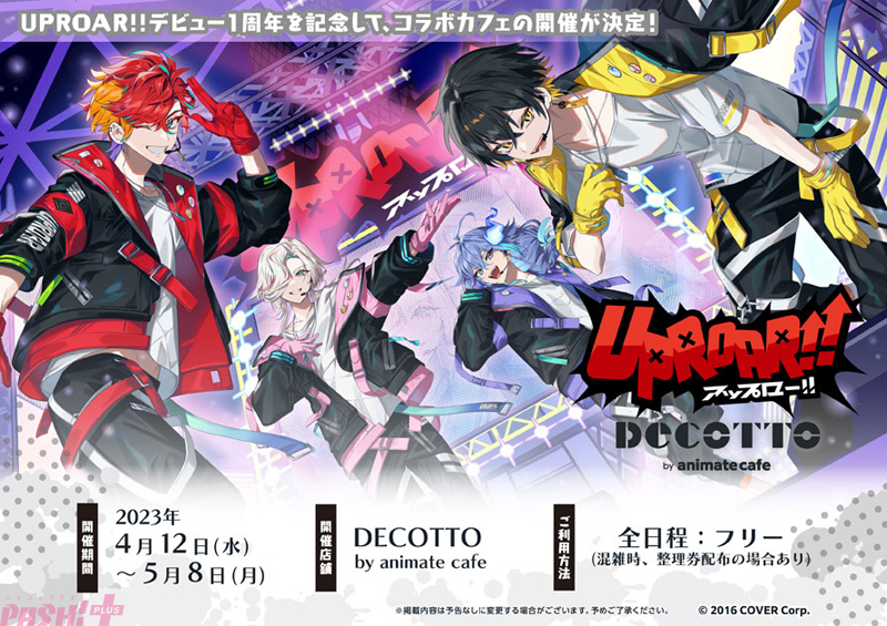 アニメイトカフェは、テイクアウト専門店DECOTTO by animate cafeにて、VTuberユニット“UPROAR!!”のデビュー1周年を記念したコラボレーションカフェ“UPROAR!!×アニメイトカフェ”を開催します。