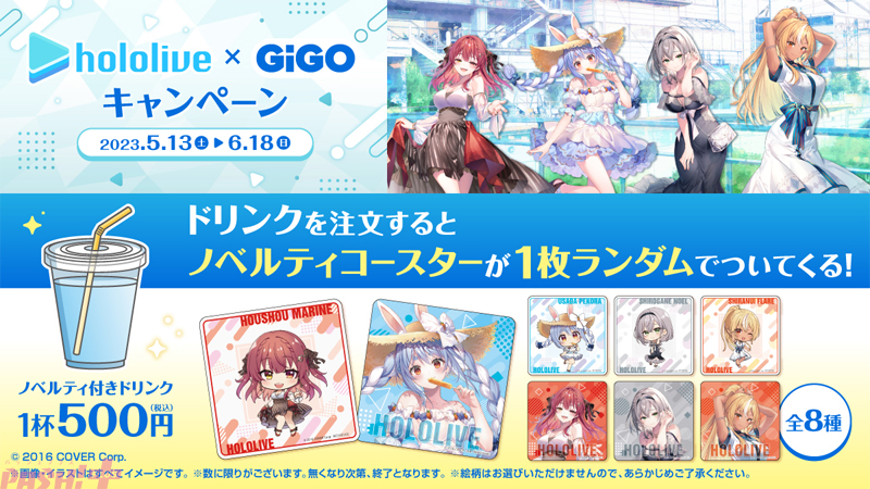 GENDA GiGO Entertainmentは、GiGOグループのお店において2023年5月13日より、カバーが運営する女性VTuberグループ“ホロライブ”とのコラボキャンペーン“hololive×GiGO キャンペーン”を開催します。