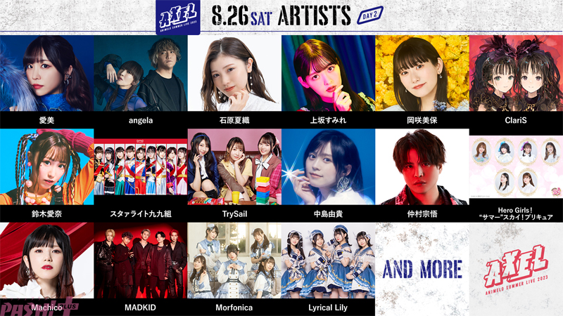愛美/angela/石原夏織/上坂すみれ/岡咲美保/ClariS/鈴木愛奈/スタァライト九九組/TrySail/中島由貴/仲村宗悟/Hero Girls!“サマー”スカイ!プリキュア/Machico/MADKID/Morfonica/Lyrical Lily 他