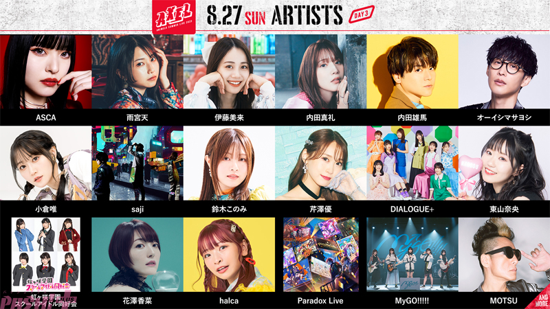 蒼井翔太/麻倉もも/大橋彩香/OxT/GRANRODEO/Co shu Nie/SCREEN mode/TRUE/なすお☆/harmoe/Who-ya Extended/三森すずこ/Liyuu/Liella!/ReoNa/Roselia 他