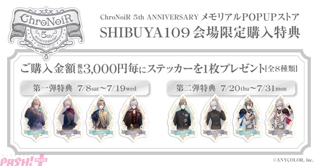 “ABEMA(アベマ)”は、VTuberグループ“にじさんじ”所属のバーチャルライバーユニット“ChroNoiR(クロノワール)”の結成5周年を記念した初のメモリアルポップアップストア“ChroNoiR 5th ANNIVERSARYメモリアルPOPUPストア”を、2023年7月8日よりSHIBUYA109(東京)にて開催します。