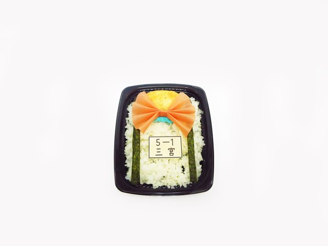蝶ネクタイは外せない、ギンのわかめ入りごはん弁当 価格:680円(税込)