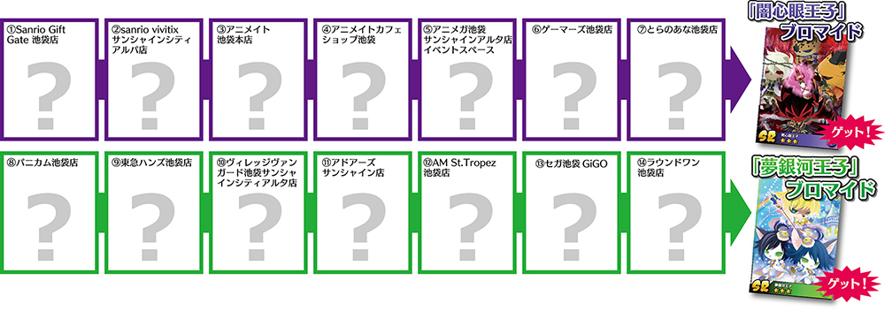 (4)参加店舗番号①~⑦で集めたキーワードで「闇心眼王子」、⑧~⑭で「夢銀河王子」のブロマイドを入手できます。