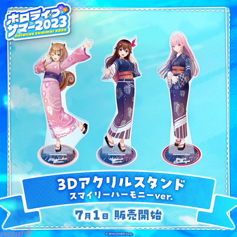 “ホロライブ・サマー2023”では、浴衣衣装や水着衣装を使用した“ホロライブ・サマー2023”だけのオリジナルグッズを販売。“ホロライブサマー・サマー2023”グッズvol.1は、7月1日22:00より販売中です。
