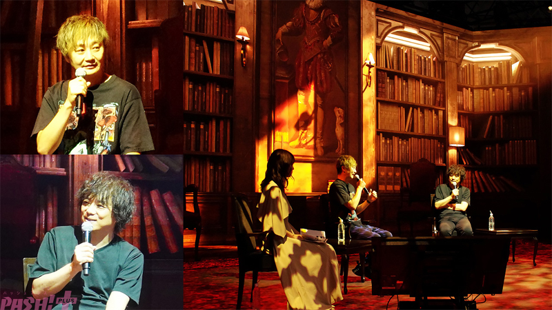 2つ目のステージプログラムでは、『超探偵事件簿 レインコード』を手掛けるトゥーキョーゲームス代表の小高和剛さんと日野晃博が登壇し、心に残る推理ゲームをテーマにトークが行われました。トークでは、お互いに好きな推理ゲームが紹介され、その作品の特にお気に入りのポイントなどを話しながら、シナリオの作り方や推理ゲームを作る上で気をつけていることなど、幅広いテーマで語られました。
