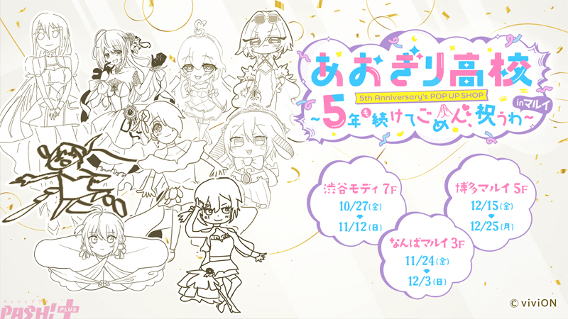 「あおぎり高校」5th Anniversary’s POP UP SHOP~5 年も続けてごめん、祝うわ~ in マルイ 博多マルイ:博多マルイ5階 12月15日(金)~12月25日(月)