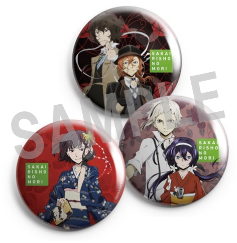 『文豪ストレイドックス』コミックスまたは小説持参で、展覧会を鑑賞した方には、森鴎外・太宰治・江戸川乱歩のオリジナル缶バッジを3種類の中から1人1個プレゼントします。