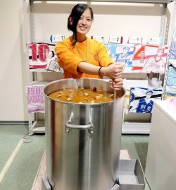 カレー鍋をまぜて選手たちにおいしいカレーを届けよう! お玉を回して出てきたボールの色に応じた景品をGET!