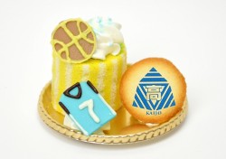 海常高校をイメージしたレモンロールケーキです。チョコで描いたバスケットボールと黄瀬のユニフォームを添えました。