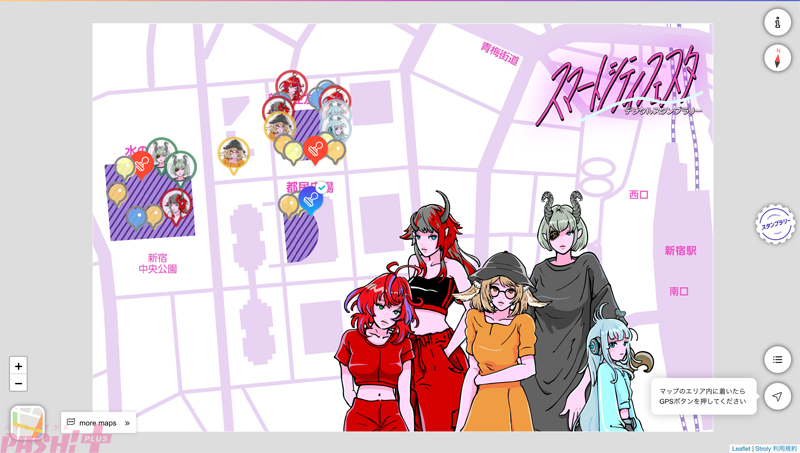 Strolyが提供する位置情報と連動したオンラインマップのプラットフォームを活用したデジタルスタンプラリーを開催。計26スポットのうち、13スポットでは人気VTuber事務所「ななしいんく」の5名による特別解説動画が視聴できます。