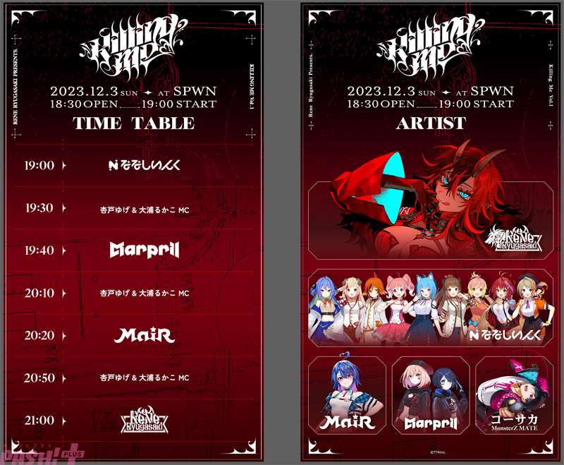 774は、運営するVTuberプロダクション「ななしいんく」に所属するVTuber「龍ヶ崎リン」が主催する、初の3Dオンライン対バンライブ「Rene Ryugasaki presents. Killing me vol.1」の配信を、2023年12月3日19時よりSPWNにて実施します。