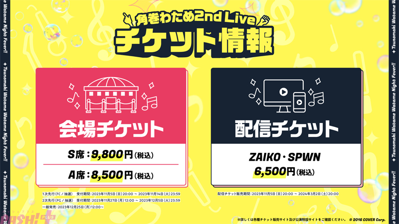 本ライブは、「ホロライブ」所属「角巻わため」の2ndソロライブです。本日11月5日(日)より「ZAIKO」「SPWN」にて配信チケットの販売が開始すると共に、現地会場チケットの1次FC先行(抽選)も開始。チケット情報などイベントの最新情報は、特設サイトおよび開催概要をご確認ください。