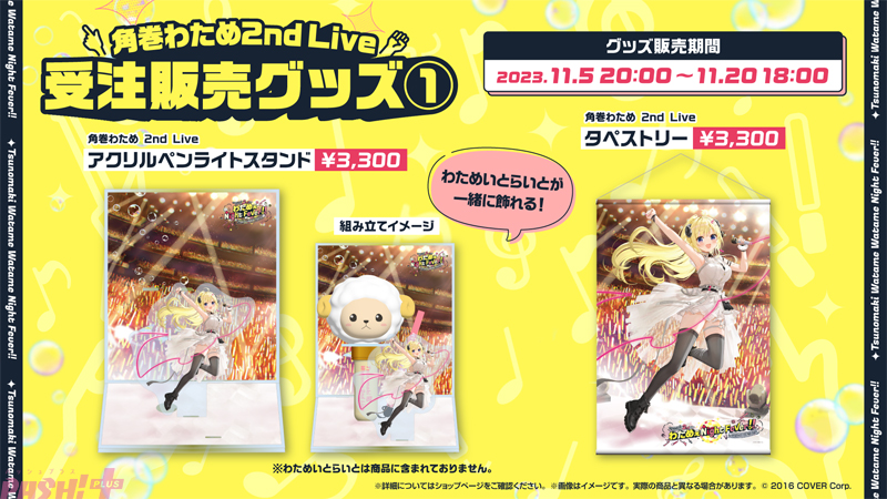 本日11月5日(日)20:00より角巻わため 2nd Live「わためぇ Night Fever!! in TOKYO GARDEN THEATER」ライブグッズヴィジュアルが解禁および販売が開始されました。