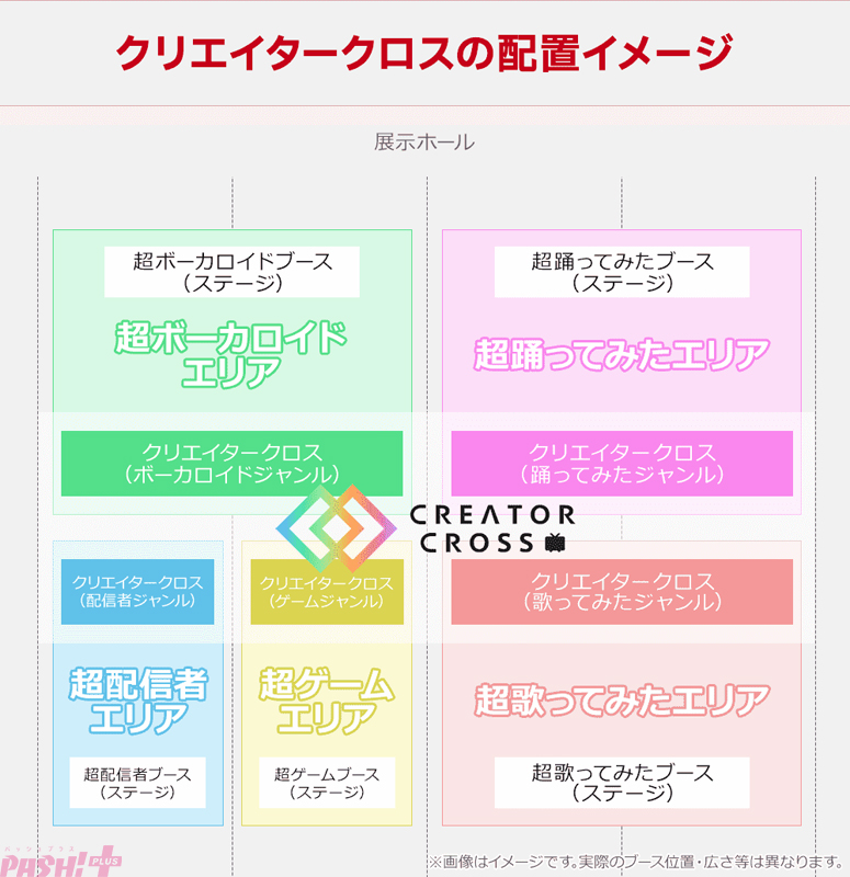 そのメイン企画として、2022年からニコニコ超会議の中心に位置づけ反響の大きかった「クリエイタークロス」のスペースを大幅に拡大し、ボカロ・ゲーム・歌ってみた・踊ってみたなどジャンル毎に分けられた幕張メッセの各エリアを横断するように設置します。