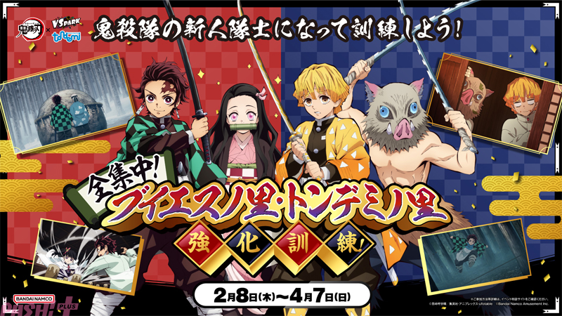 バンダイナムコアミューズメントは、アニメ『鬼滅の刃』とのコラボイベント「全集中!ブイエスノ里・トンデミノ里強化訓練!」を、全国の『VS PARK』・『トンデミ』にて2024年2月8日(木)から4月7日(日)まで実施します。