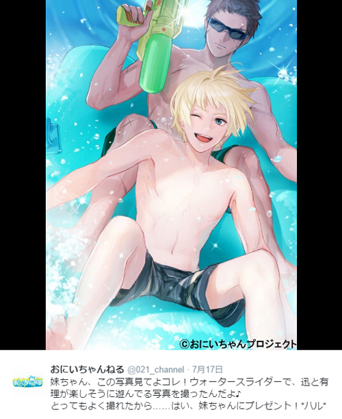 10月19日(水)20時から放送されるニコニコ生放送第4回『生おにいちゃんねる~みんなで広げようお兄ちゃん の輪~』にはパーソナリティとして晴役・森嶋秀太、ゲストには八澄役・工藤雅久、露偉役・武内駿輔が出演し、デートしたいお兄ちゃんを投票で決める新企画『おにいデート総選挙』がスタートする。このコーナーで1位を取ったキャラクターは後日ビーズログにて描き下ろしピンナップイラストとショートストーリーが掲載される。