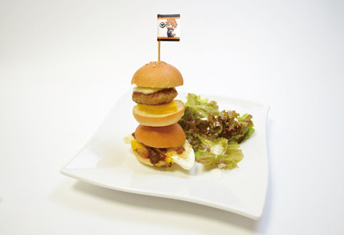 「高さで勝負しないとは言ってないっ!!!」変人コンビのハンバーガータワー 価格:1,080円(税込)