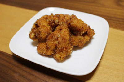 下野さんの青春時代には、友達の家に唐揚げ弁当とスナック菓子を買って行き、それを食べながらゲームをしたという思い出があるとか。そんな下野さんの「青春の味」を再現したのがこの唐揚げ。唐揚げにスナック菓子をたっぷりまぶした斬新な味わいです。