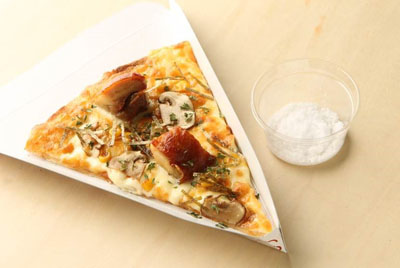 森久保祥太郎さんと浪川大輔さんが「つまみで食べたい」と思うお酒に合う和風ピザを、宅配ピザのピザーラに商品開発依頼。そのまま食べてももちろんおいしいですが、別添えの「うま塩」をふりかけると、また違った味わいを楽しめます。