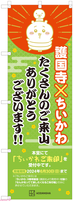 講談社は、大反響の「護国寺 ちいかわご朱印イベント」新規のぼり掲出情報を公開しました。