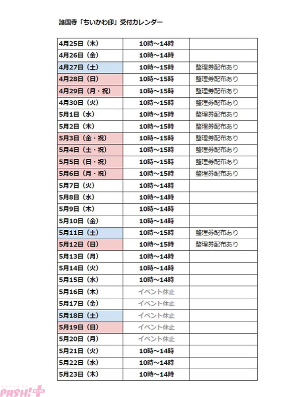 ▲整理券配布カレンダー(4月25日時点の内容)