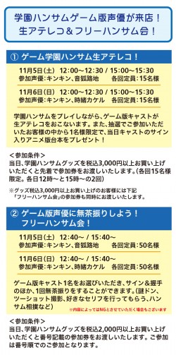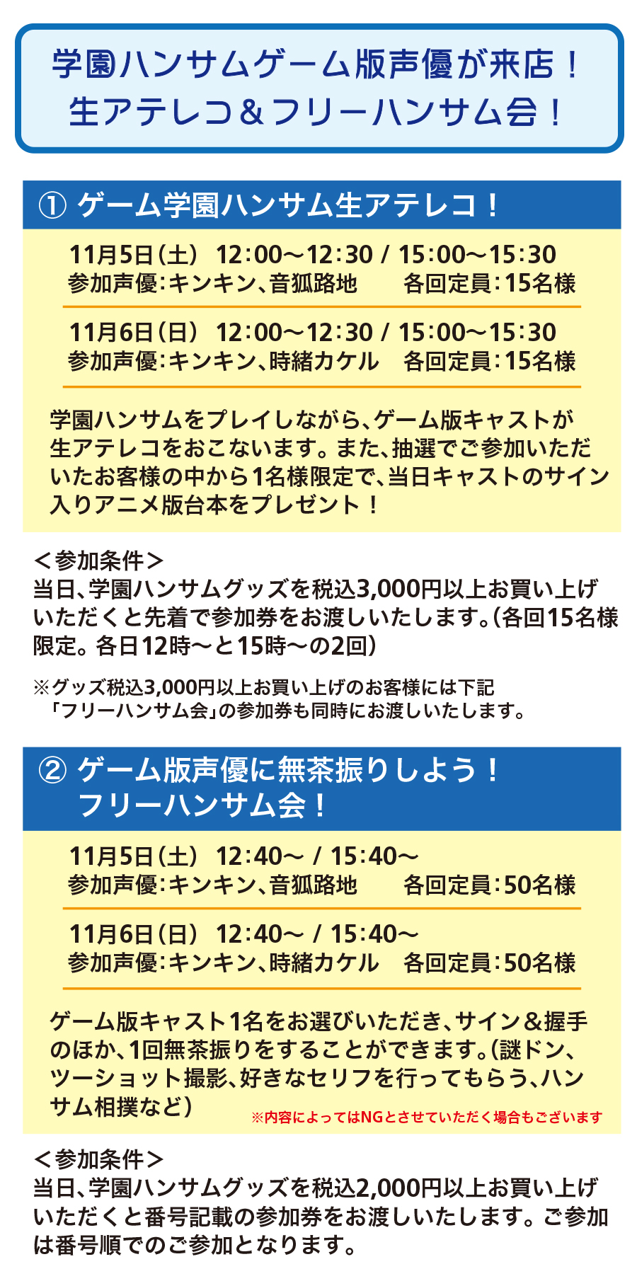 ■ゲーム版キャスト出演イベント 「学園ハンサムゲーム版声優が来店!生アテレコ&フリーハンサム会!」