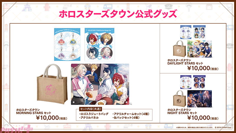 また、わいあっと先生、紗々音シア先生、伊東七つ生先生、先崎真琴先生がイラストを担当した、ホロスターズタウンの朝・昼・夜の姿を描いた3枚のイラストのセット商品も販売されます。