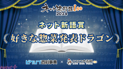 ネット上で新しく生み出され、特に大きな話題となった単語をネット流行語100委員会(ドワンゴ・ピクシブ)が選定する「ネット新語賞」は、総合第3位にもランクインした『好きな惣菜発表ドラゴン』に決定しました。『好きな惣菜発表ドラゴン』は、ボカロPのンバヂ(nbaji)さんが2023年8月に発表したオリジナル楽曲、およびその動画中に登場するキャラクターの通称です。