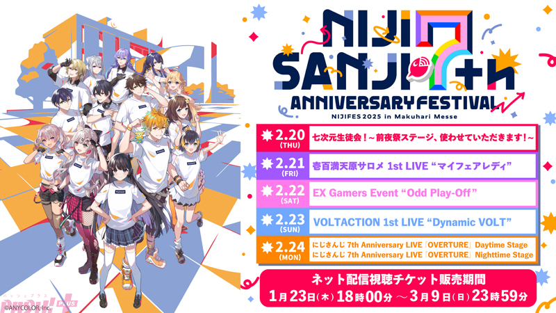 ANYCOLORが運営するVTuber / バーチャルライバーグループ「にじさんじ」は、2025年2月20日(木)~24日(月)に幕張メッセ 国際展示場 展示ホール1~8および幕張イベントホールで開催される「にじさんじフェス2025」の最新情報を発表しました。