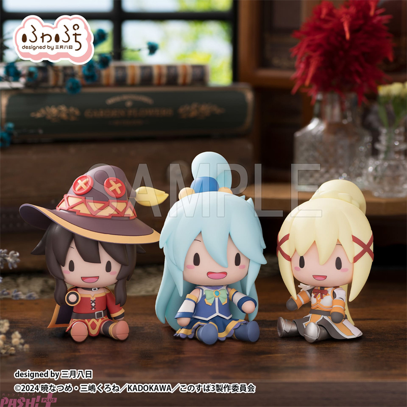 イラストレーター・三月八日さんとの共同デザインブランド「ふわぷち」コーナーでは、手軽に表情やポーズを変えて楽しめるギミックフィギュア「ふわぷち デフォルメフィギュア」から、TVアニメ『この素晴らしい世界に祝福を!3』シリーズをはじめ、初公開となる情報やフィギュアの展示など多数展示予定です。今回はセガプライズやセガグッズで展開中のぬいぐるみシリーズもコーナー内でいっしょに展示予定です。会場でぜひご覧ください。