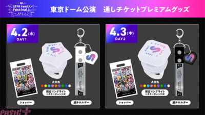 また、出演者や概要などの発表に合わせ、3日間通しチケット・2日間通しチケットの特典となるプレミアムグッズも公開されました。来場日ごとに異なる形の限定リングライトや、イベントの想い出を大切に保管できる銀テホルダー、チケットファイルなど、こちらも公演内容と共に5日間を余すことなく楽しめるグッズとなっています。
