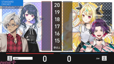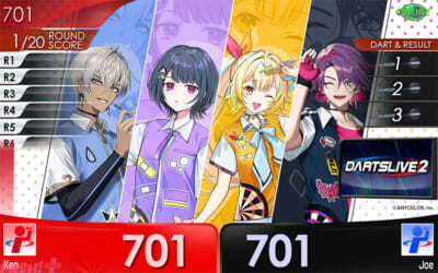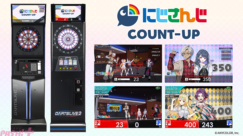 『にじさんじダーツパーティ』に加えて、全国の「ダーツライブ3」「ダーツライブ2」には、『にじさんじCOUNT-UP』が登場します。2024年12月に行われたコラボ配信の様子をゲーム背景に、ダーツの定番ゲームである「COUNT-UP」を楽しむことができます。