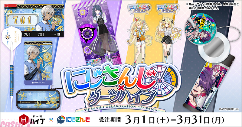 ダーツグッズ専門店ダーツハイブでは、各ライバーをイメージしたダーツセットや撮り下ろしイラストを使用したアクリルダーツスタンドなどを受注販売いたします。