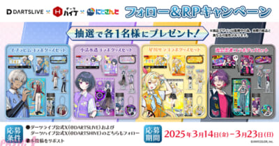 ライバーごとのコラボグッズの詰め合わせセットが当たるSNSキャンペーンを、ダーツライブとダーツハイブの合同で実施します。ぜひご参加ください。