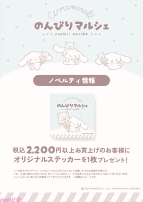 マリモクラフトは Shibuya Sakura Stage(渋谷サクラステージ)内のキャラコレにて、サンリオのキャラクター『シナモロール』のポップアップストア「シナモロールのんびりマルシェ」を2025年2月20日(木)~3月12日(水)の期間に開催します。