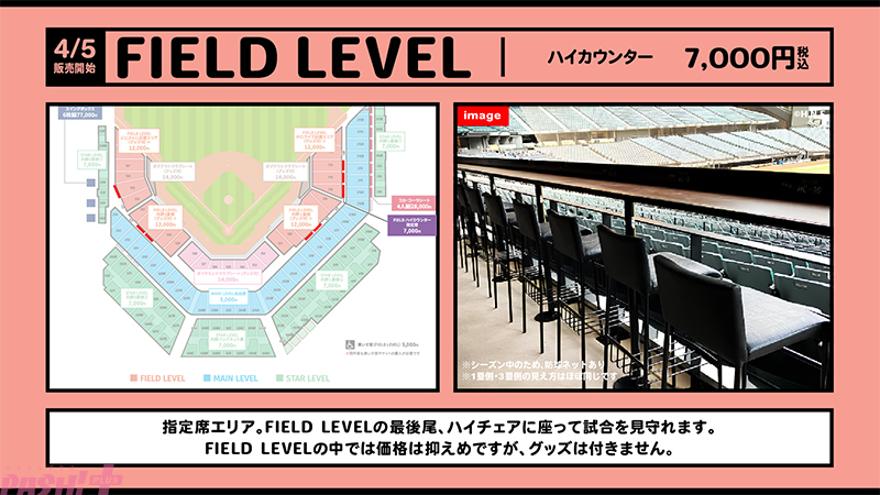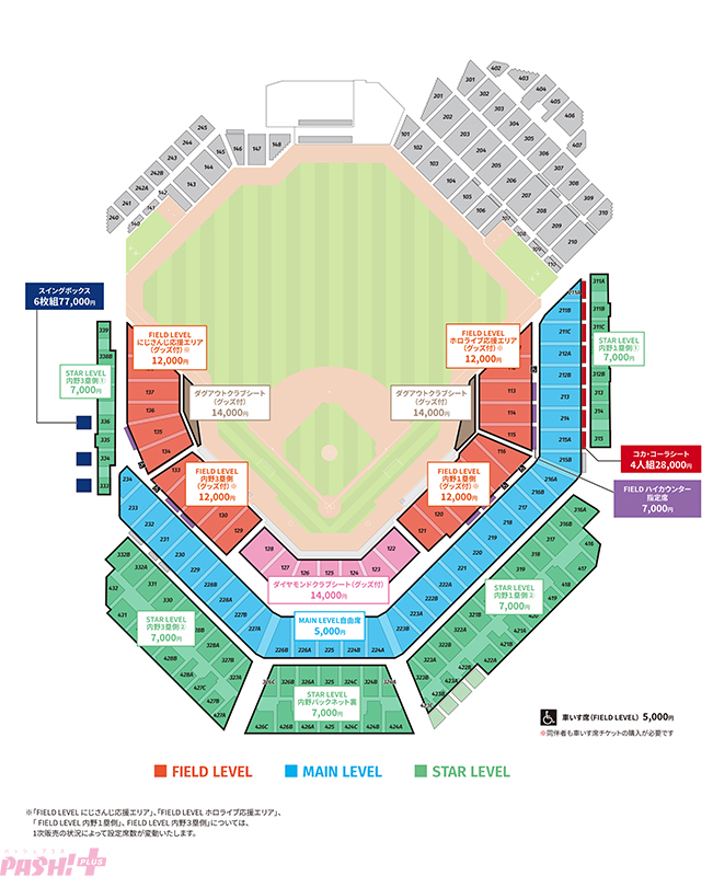 ※「FIELD LEVEL にじさんじ応援エリア」、「FIELD LEVEL ホロライブ応援エリア」、「FIELD LEVEL 内野1塁側」、「FIELD LEVEL 内野3塁側」については、販売の状況によって設定席数が変動します。