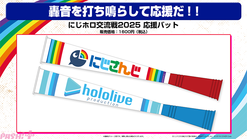 にじさんじ、ホロライブのロゴと各チームロゴがプリントされた応援バットです。