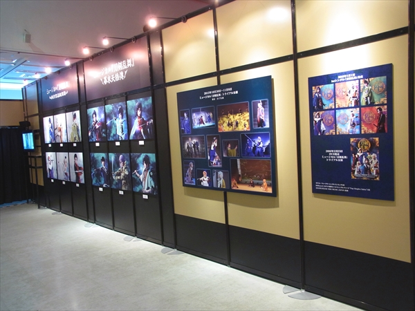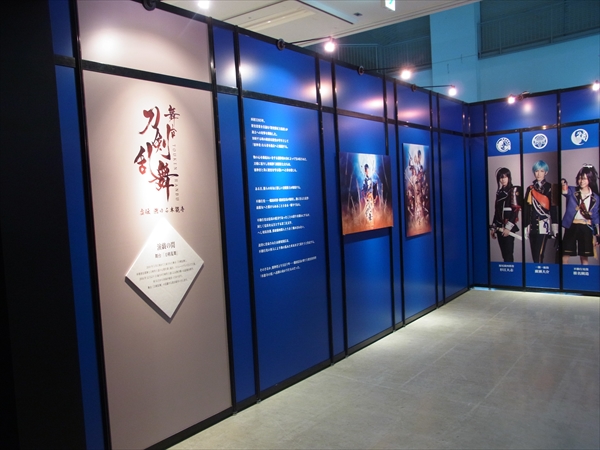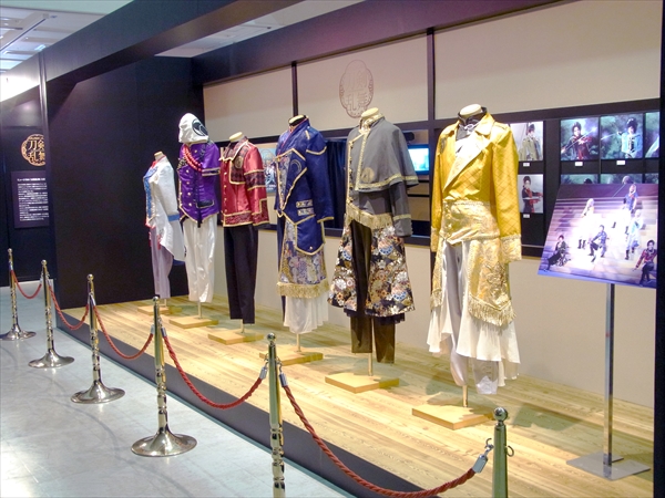 続いては「演戯の間」。こちらでは「ミュージカル『刀剣乱舞』~阿津賀志山異聞~」で使用した衣装やパネルが展示されています。加えて「舞台『刀剣乱舞』虚伝 燃ゆる本能寺」キャスト陣のパネルや公演写真も展示されているので、『刀ミュ』『刀ステ』が大好きなファンにはたまらないコーナーとなっています。