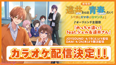 映画「遠井さんは青春したい!『バカとスマホとロマンスと』」オープニング主題歌『めっちゃ遠い! feat.ジェル&遠井さん』カラオケ配信決定&フルサイズ音源を近日中に配信予定!