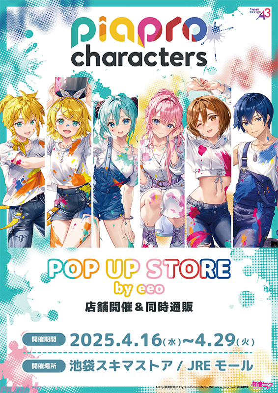『ピアプロキャラクターズ』のPOP UP STOREが、池袋スキマストアで本日4月16日(水)からオープン! さらに、通販サイト「JREモール」&「eeo Store online」でも同時通販中です。