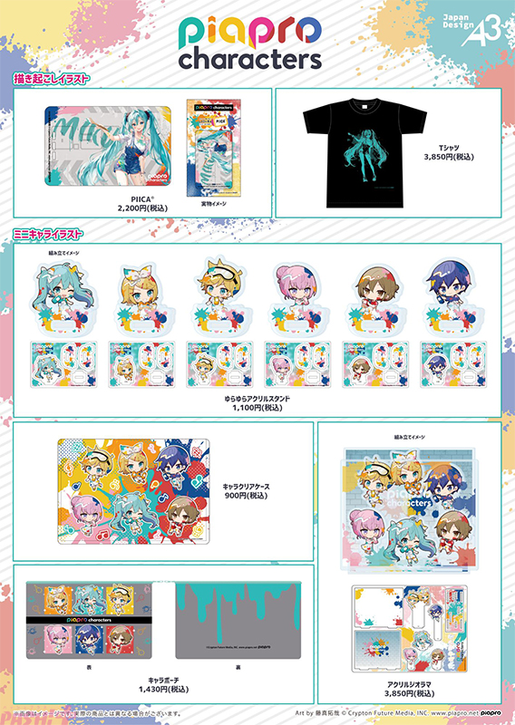 POP UP STOREでは、“ペンキアート”をテーマに描かれた、初音ミクを含む『ピアプロキャラクターズ』の6人(初音ミク・鏡音リン・鏡音レン・巡音ルカ・MEIKO・KAITO)のイラストを使用した新作グッズが多数登場します。