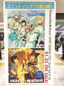 またJR池袋駅の中央通路には「UNDEAD」「2wink」「Knights」「紅月」「流星隊」「Ra*bits」「Valkyrie」「Switch」「fine」「Trickstar」の全10ユニットのジャケットビジュアルの広告も展開中。こちらもトラックと同じく1月22日(日)までとなっている。池袋へ来た際にはぜひチェックしよう!