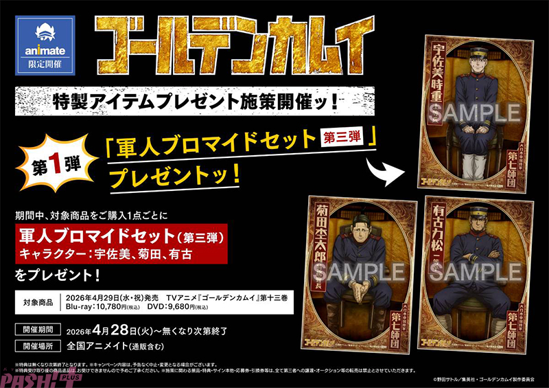 アニメイトは、2026年1月から「TVアニメ『ゴールデンカムイ』最終章×アニメイト 七大キャンペーン」を開催します。