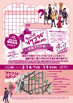 開催内容:TOWER RECORDS 池袋店やアニメイト池袋本店など、合計9カ所の“イケブ96”スポットに設置された、96猫等身大パネルに仕掛けられた謎を解き、ニコニコ本社 nicocafeで食事をすると、会計時に“96猫特典”がプレゼントされる。