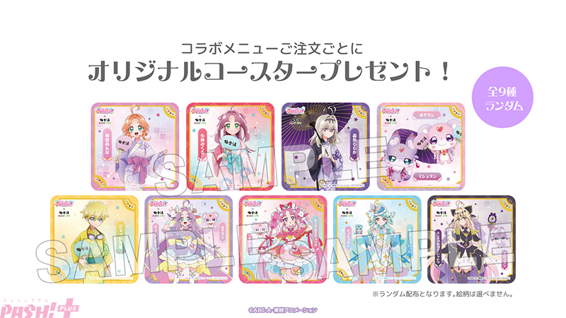 キャラクターをイメージしたコラボメニューを店舗で販売します。ご注文いただいた方に、オリジナルコースターをランダムでプレゼントします。